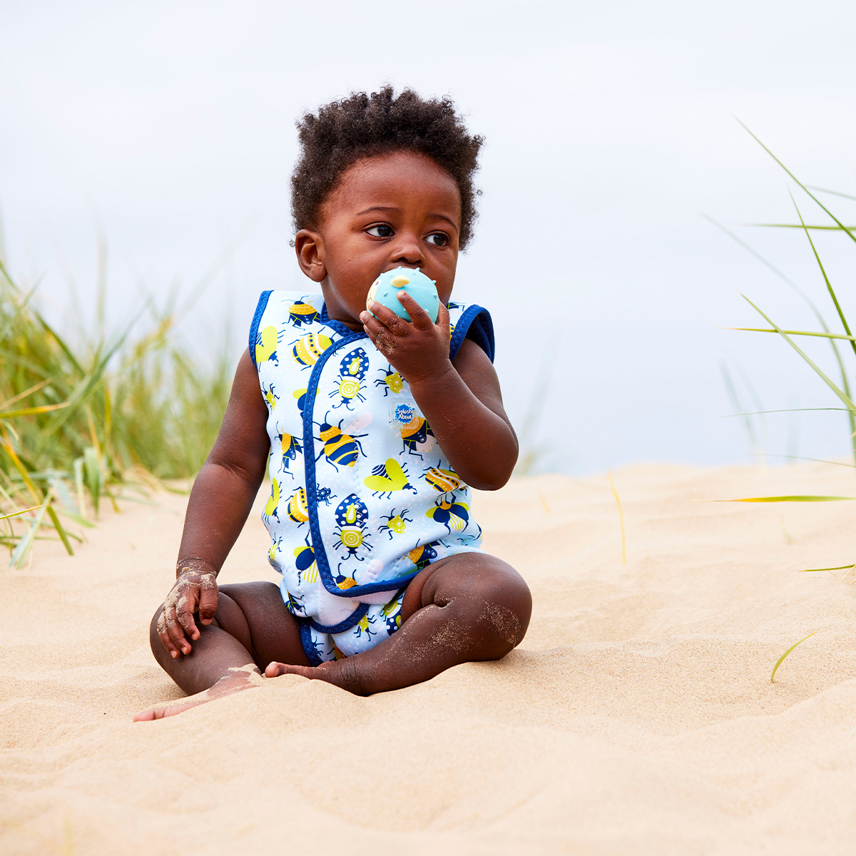 The Baby Wrap™ wetsuit is the perfect solution for wriggly babies and toddlers. Made from 2mm thick neoprene to provide the best core body warmth, it leaves legs and arms free to kick and splash without restriction, so babies can enjoy the feeling of the water around them, without feeling the cold.