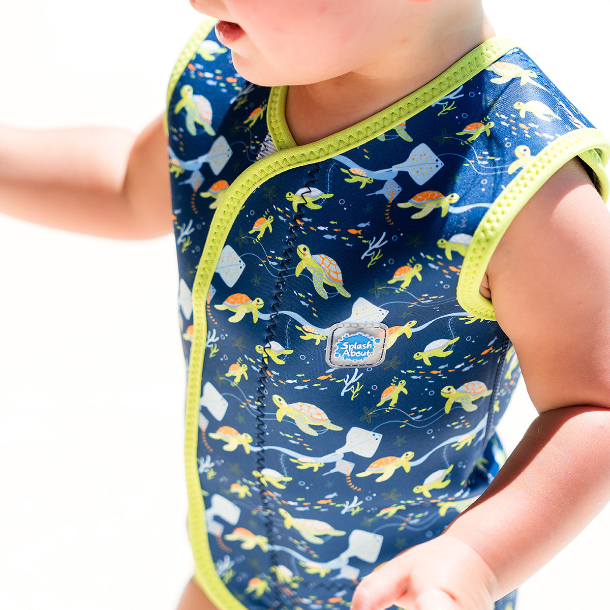 The BabyWrap is an original Splash About invention designed to keep babies warm by maintaining their core temperature in the water. It is fully adjustable and fastens securely for a perfect fit every time. Made from soft 2mm neoprene, it opens completely flat, making dressing and changing as easy as possible—an ideal wetsuit for wriggly babies and toddlers.