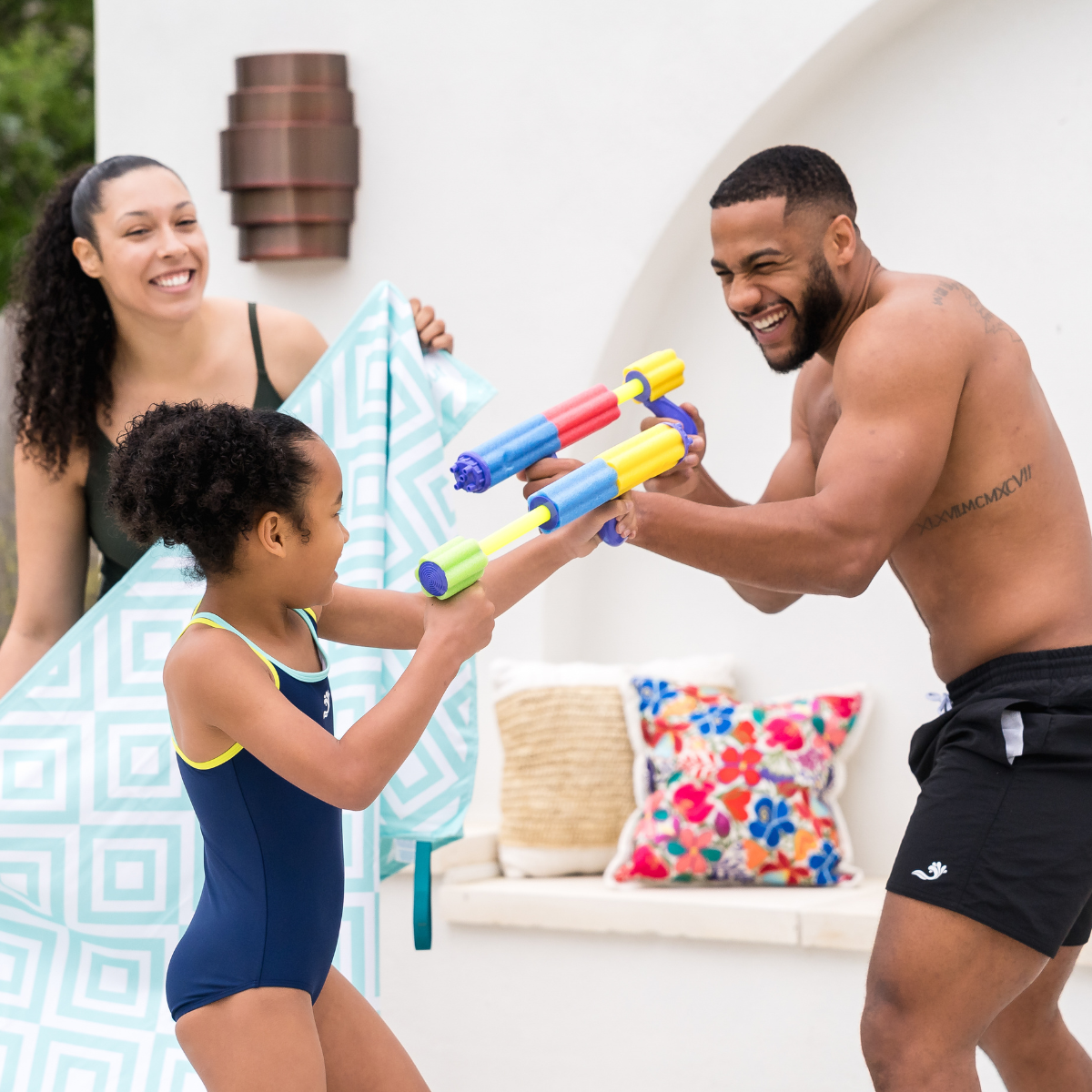 Water soakers encourage active movement and social play that builds confidence around water, whilst creating positive family memories. They complement our learn to swim products excellently as rewards for lesson progress, and work brilliantly with our adult swimming range for complete family water fun. Remember, adult supervision is always required when children use swimming aids or play with water toys.