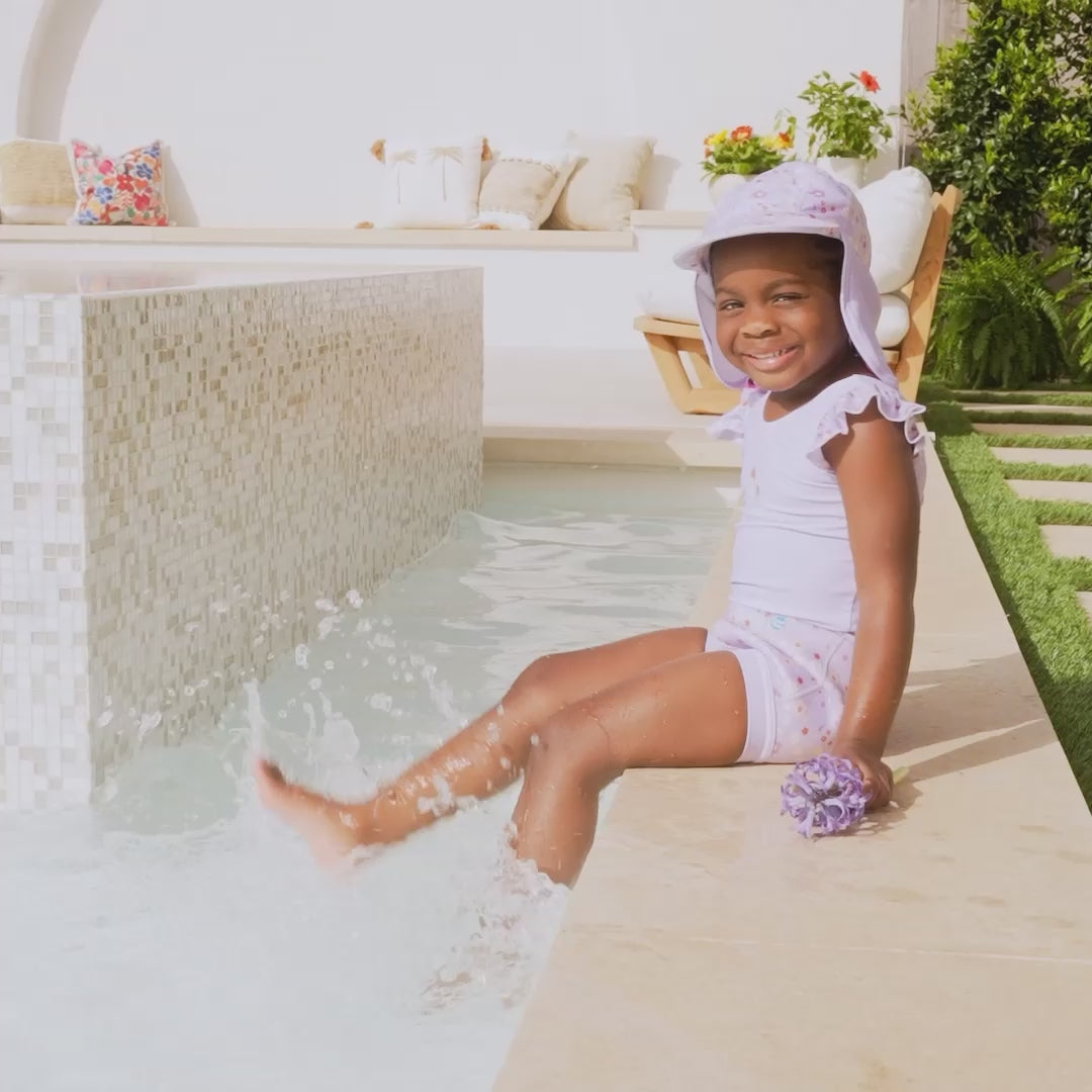 Protect little heads from the sun in these lightweight, quick drying legionnaire sunhats. Designed to be worn in and out of water, they are elasticated to fit the head without slipping. A peak helps to protect eyes from the sun, whilst the fabric at the back is long to cover the back of the neck, keeping children cool and sun protected. Available in all of our best-selling designs in a range of sizes from 1 to 6 years.