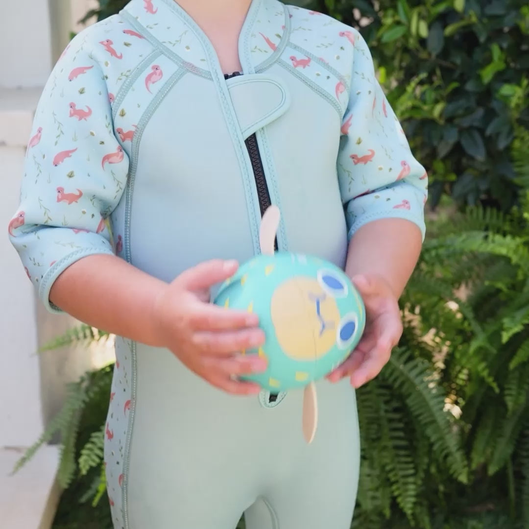 Adorable otters on the Playful Otters Shorty Wetsuit are just asking for toddlers to come and play! With super cute faces and gentle colours, this is a timeless design for little boy and girls.