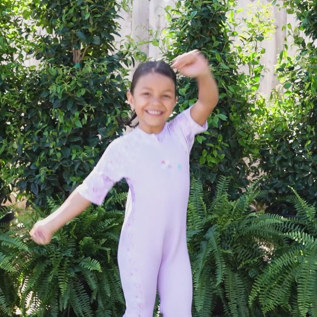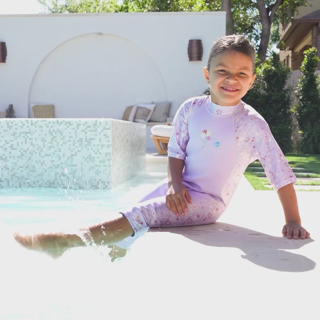 Spring flowers on a pastel backdrop make the Lilac Spring UV Sun & Sea Suit a perfect choice for girls. A pretty print to compliment a little girl’s delicate features.