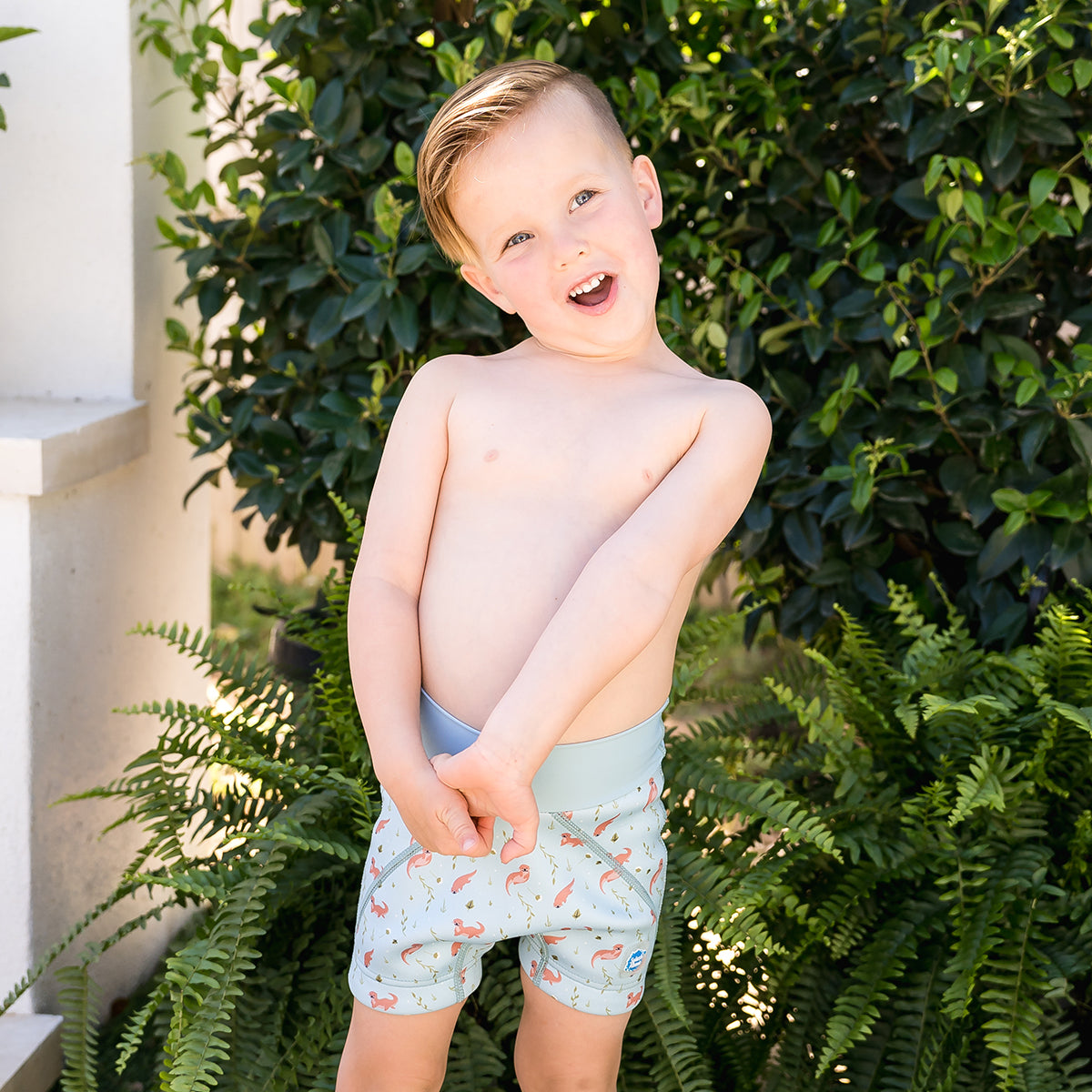 Toddler Splash Jammers from Splash About are a perfect solution for young children who still need the support of a swim nappy, without looking, or feeling, like they are wearing one.