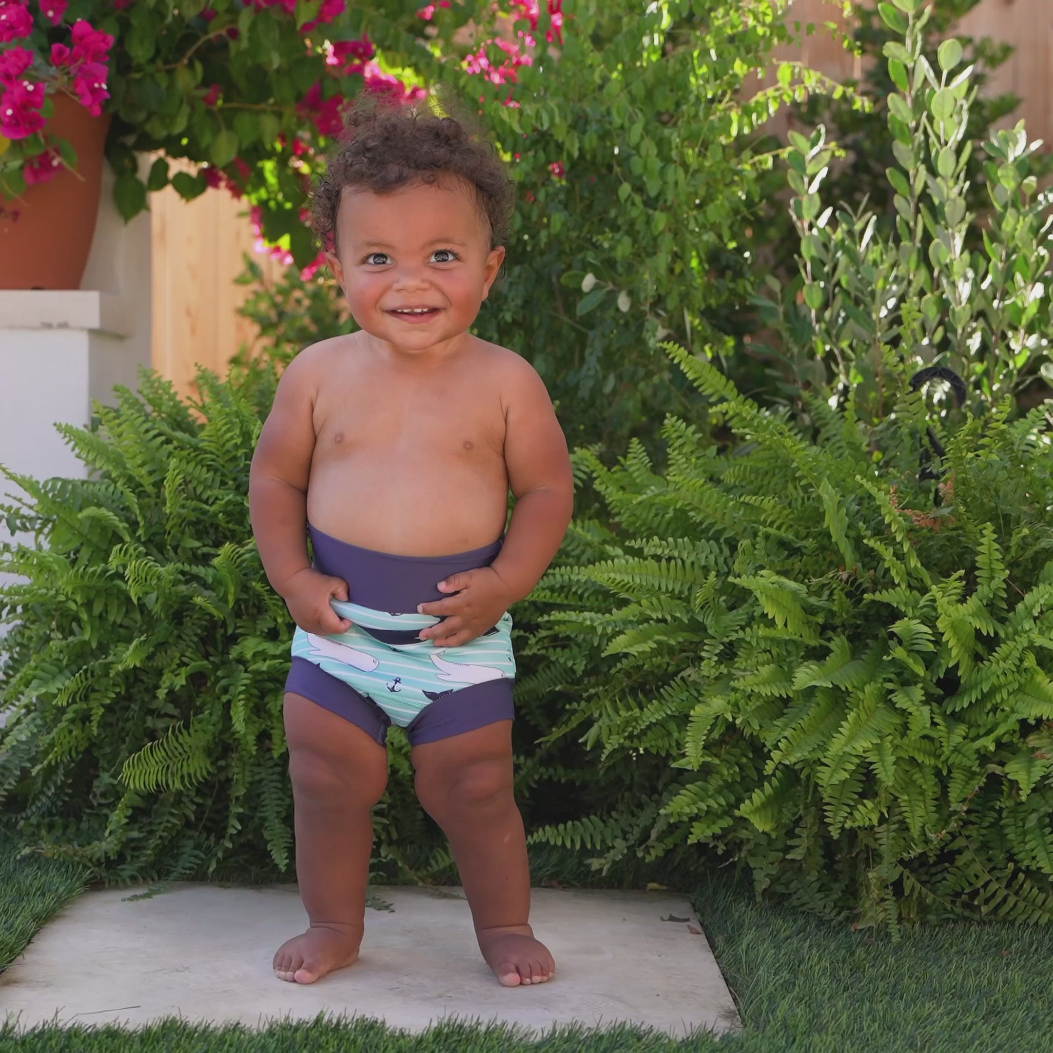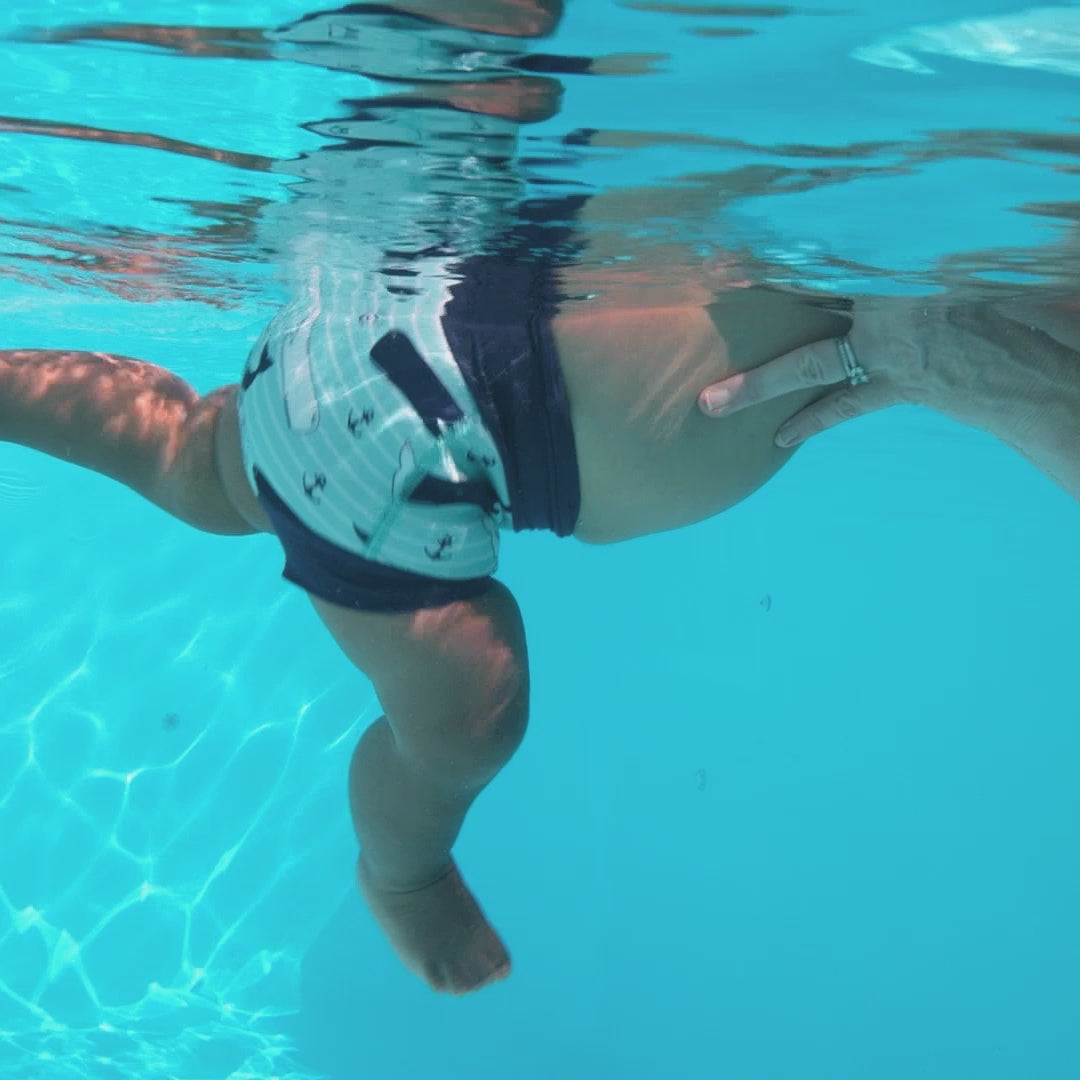 The Happy Nappy™ from Splash About is an innovative reusable swim nappy that reliably protects against faecal leaks. Ergonomically designed, the Happy Nappy™ is shaped to cup baby’s bottom to prevent any gaping, whilst specialist waist and thigh ribs fit snugly, to form a seal that prevents any solids leaking out into the pool.
