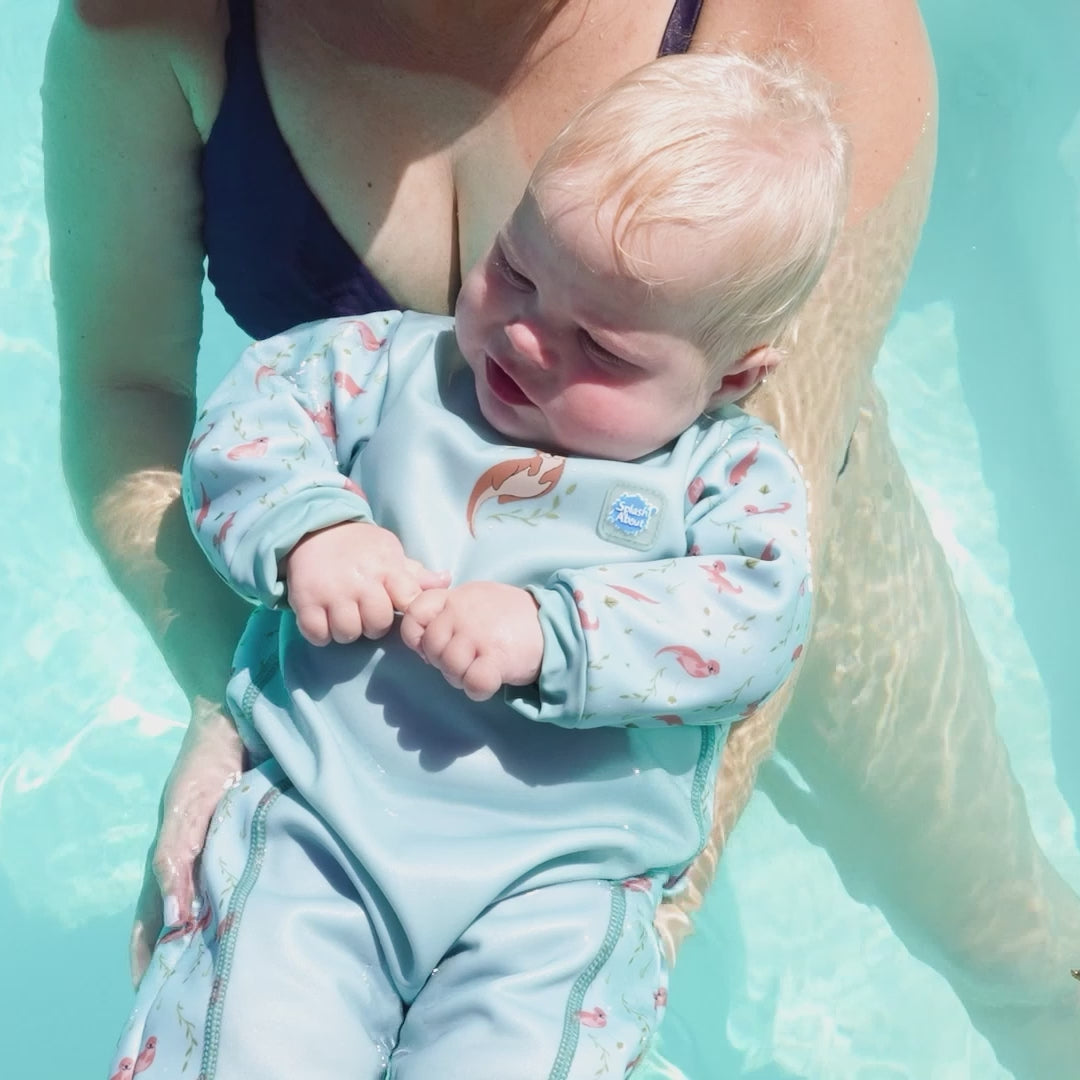 Lined with super soft fleece, and with full-length sleeves and legs, the Warm In One™ works by creating a barrier between the body and the surrounding water, which then becomes heated by the baby's own body warmth. This helps babies to keep their body temperature regulated, whilst the soft fleece lining makes them feel snuggly and warm. Cuffs around the wrists and ankles help to maintain warmth and keep barrier creams in place.
