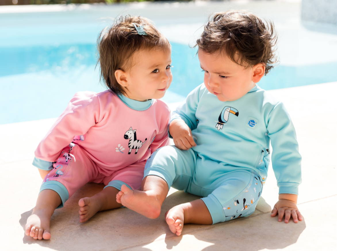 Our products are specifically designed for babies and children learning to swim. Unlike regular swimwear, our specialist designs include features like integrated swim nappies, thermal properties for warmth, and swimming aids that position children correctly for learning