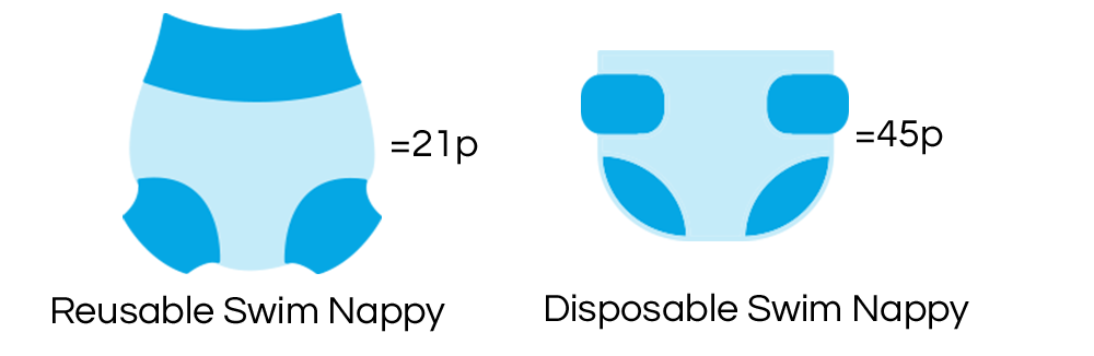 A reusable swim nappy is half the cost per wear of a disposable swim nappy. Using a reusable nappy for swimming lessons alone will save you £12.41 a year