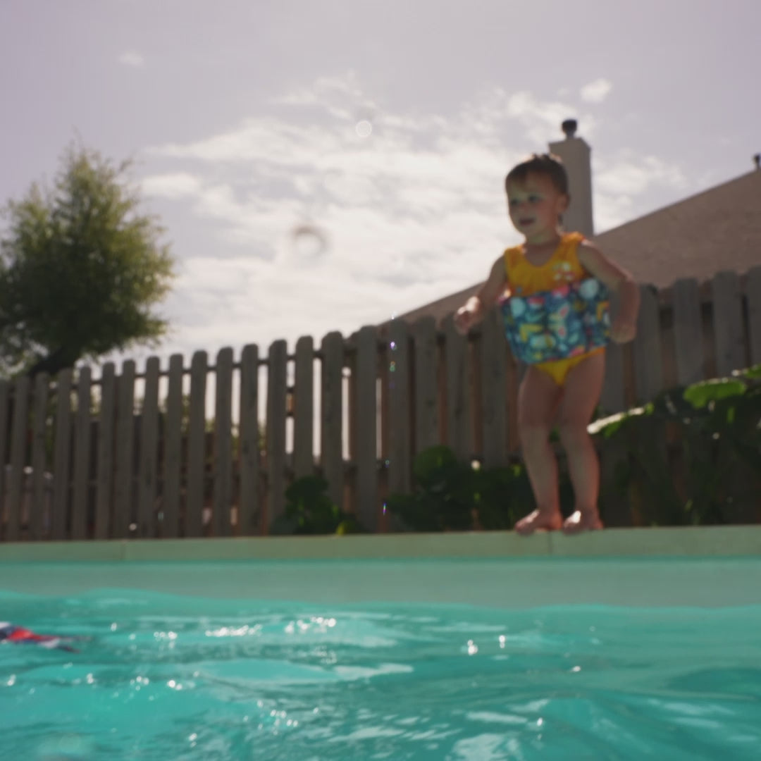 Please note, this is not a life-saving device and adult supervision is required at all times. You may need to hold the child’s hands on first wearing the Floatsuit until they find their balance and stability in the water.