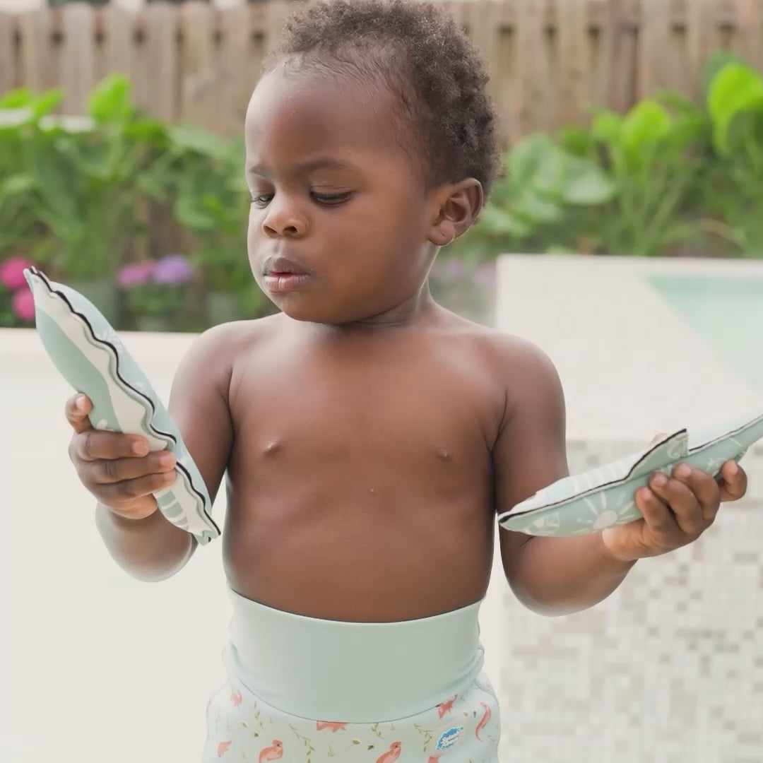 The Happy Nappy™  from Splash About is an innovative reusable swim nappy that reliably protects against faecal leaks. Ergonomically designed, the Happy Nappy™  is shaped to cup baby’s bottom to prevent any gaping, whilst specialist waist and thigh ribs fit snugly, to form a seal that prevents any solids leaking out into the pool.