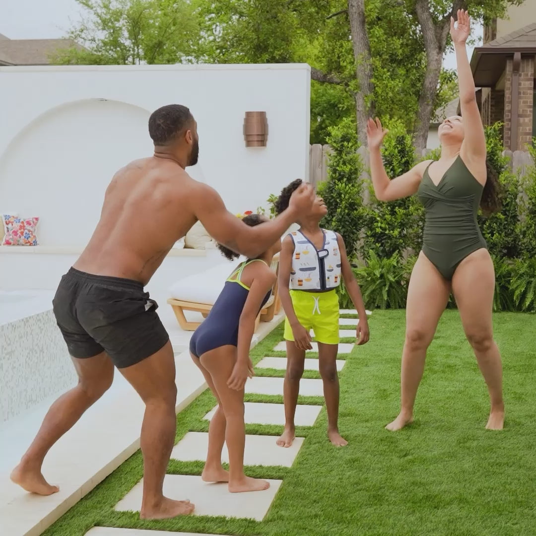 These classic black sports-style swim shorts are designed for both practicality and comfort, making them a great choice for swimming and water sports.
