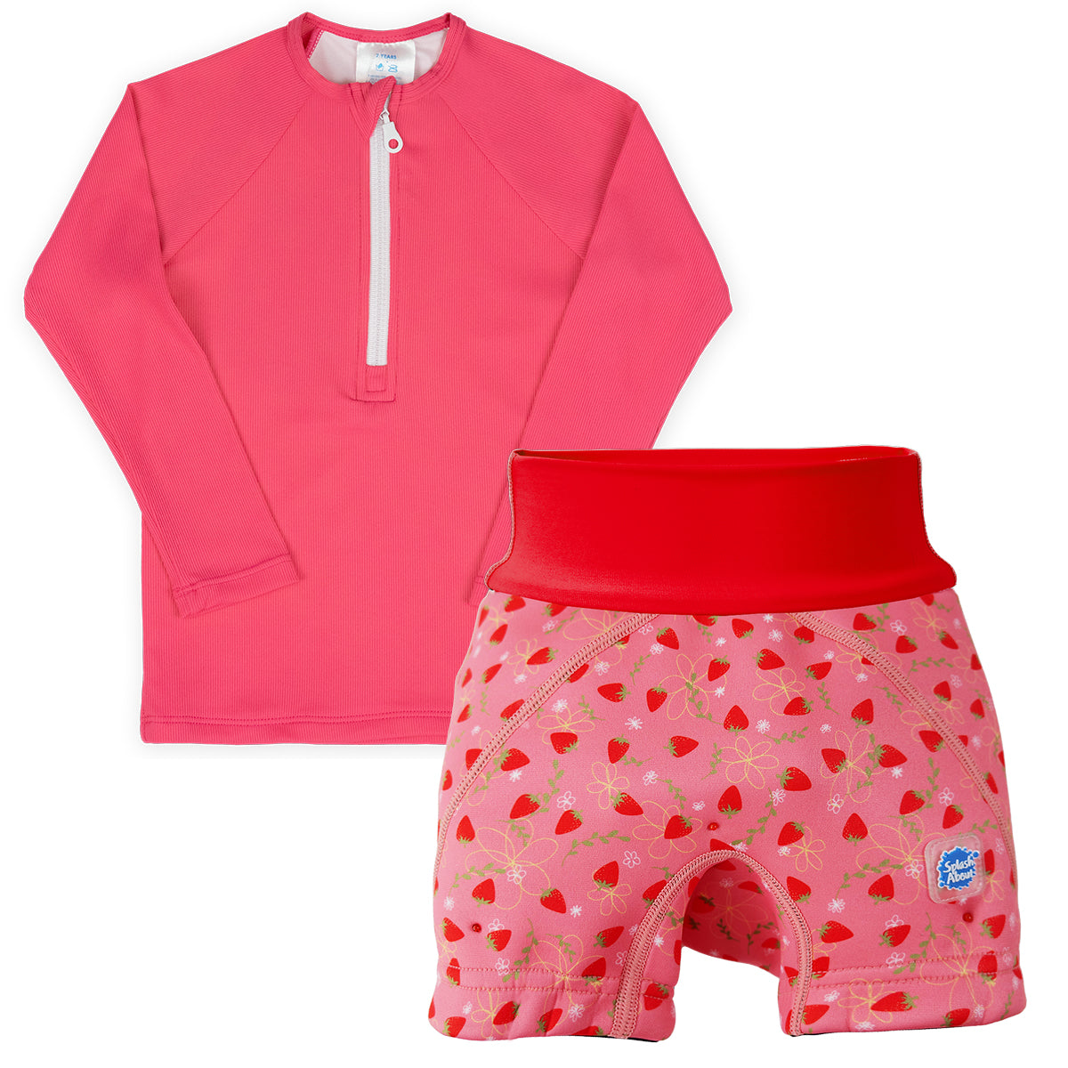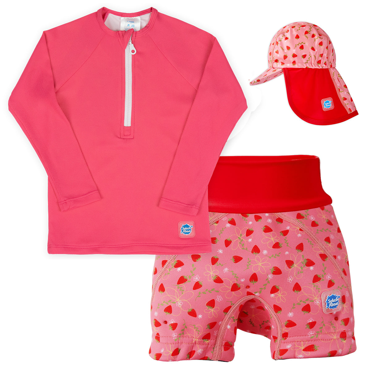 Long sleeves, a high neck for added coverage and a front zip for easy dressing