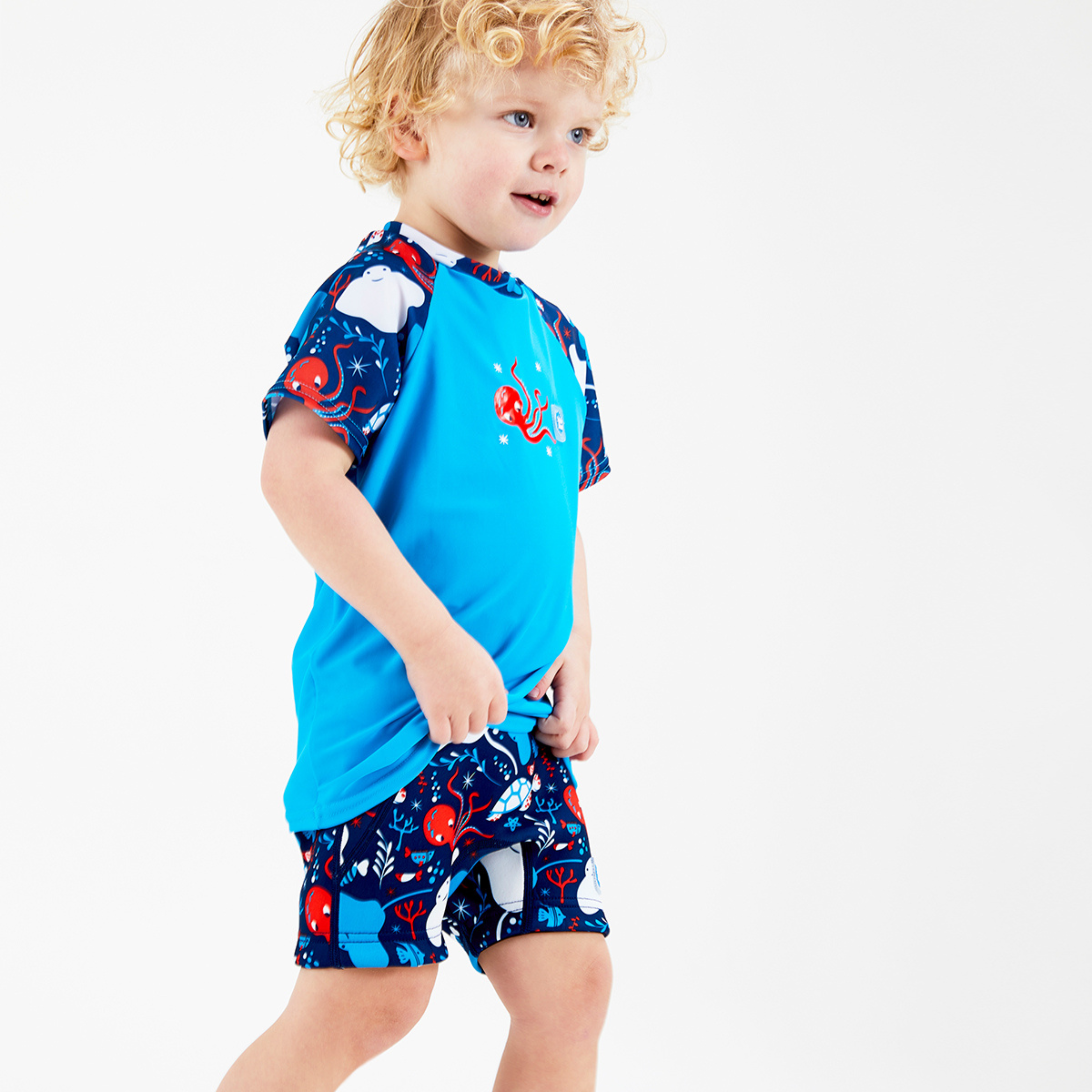 Our cool short sleeved rash vests are perfect for protecting the areas most vulnerable to the sun whilst your little one plays. Quick-drying and comfortable for all day wear, these nylon/elastane t-shirts are perfect for the beach, pool or garden.