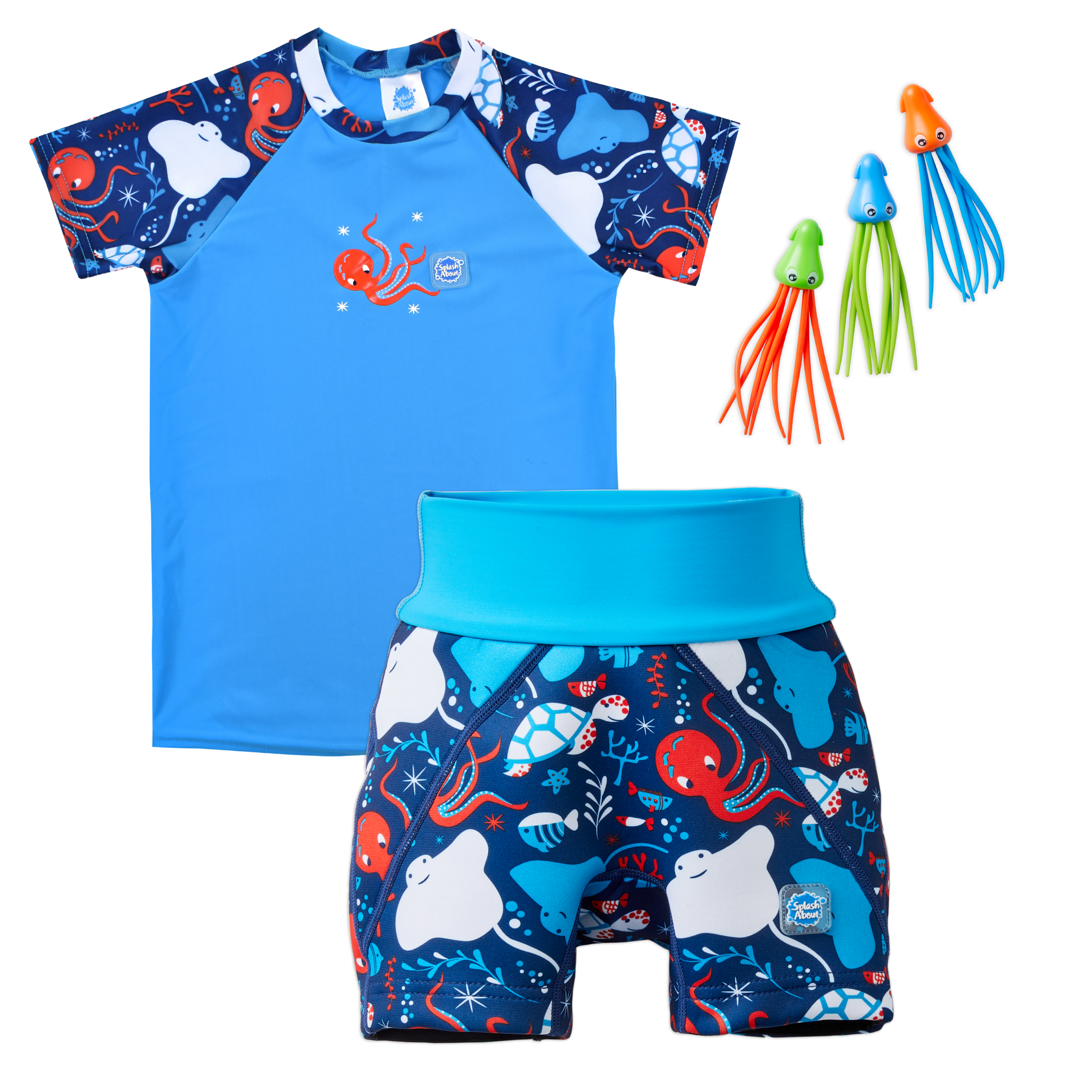Dive into fun in our Under the Sea rash vest. Featuring playful sea friends including Turtles, Rays and our shy octopus, this is the perfect t shirt for your little explorer.