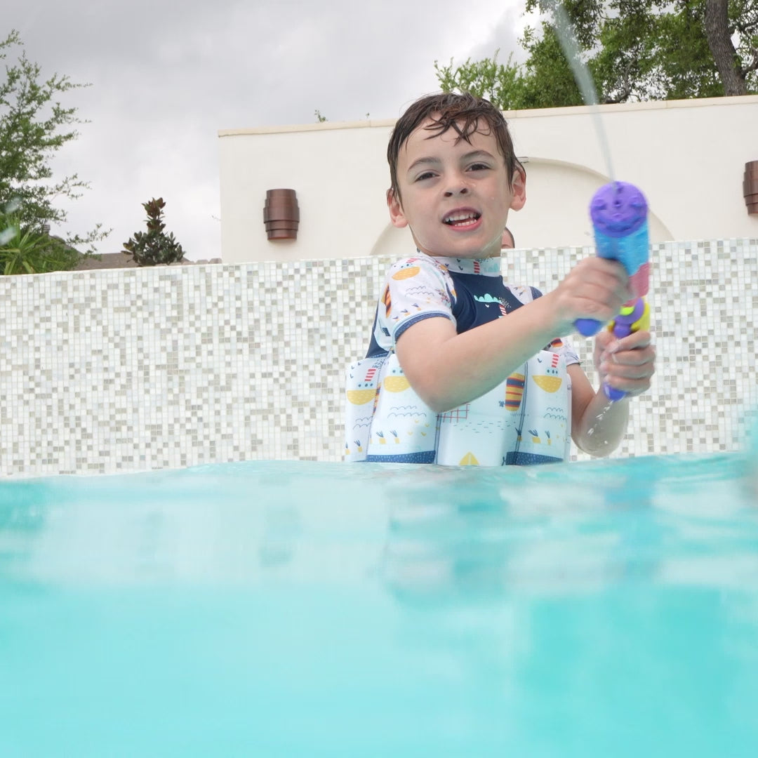 The adjustable buoyancy system is explained in detailed instructions that come with the Sleeved Floatsuit, to ensure a safe and fun swimming experience for you and your child.