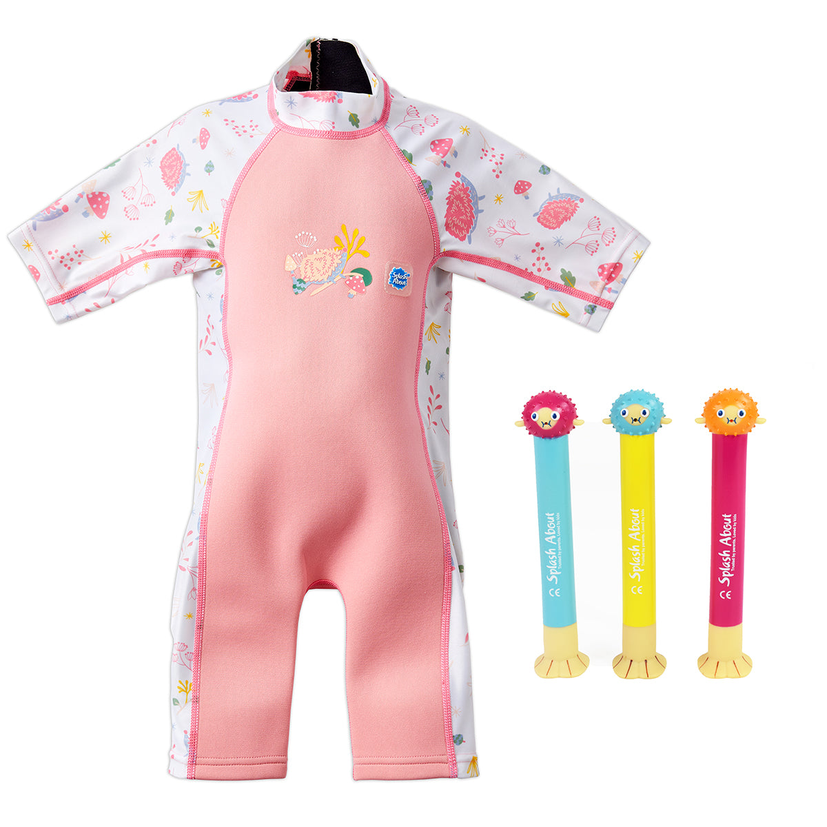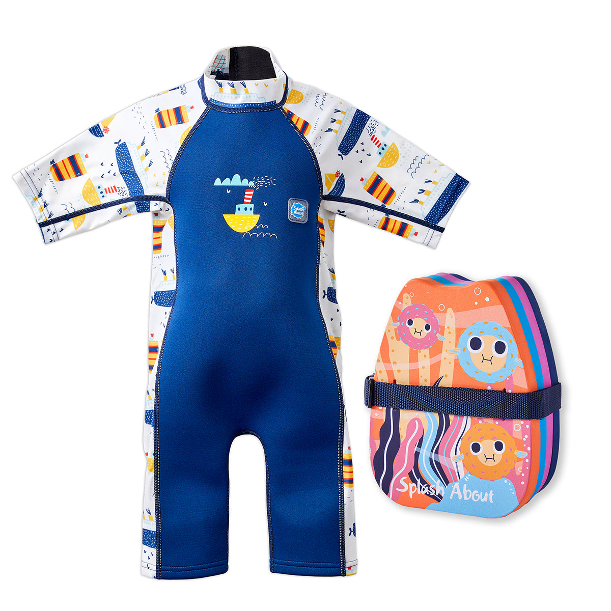 The UV Sun and Sea wetsuit has been designed to suit active children whilst on the beach, or by the pool. Made from high quality 1 mm neoprene, it features UPF50+ soft Polyester/Elastane side panels and sleeves that allow children to play without the restrictions of a full neoprene suit. A high neck ensures children are covered across the areas most vulnerable to the sun.